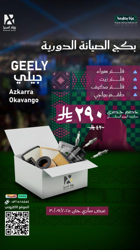 بكج الصيانة الدورية ل جيلي Azkarra Okavango